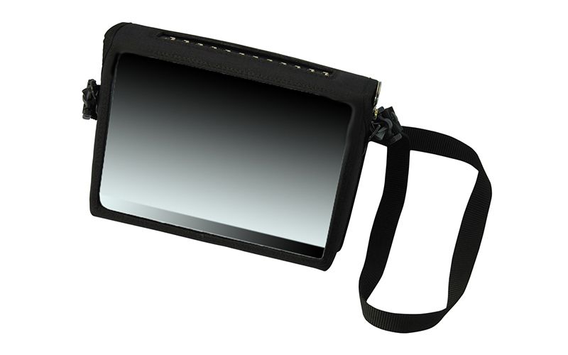 Alle Bedienelemente und Verbindungsbuchsen (auch Bluetooth) erreichbar, ohne die Tasche öffnen zu müssen
